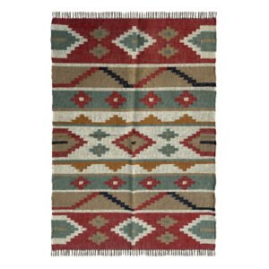 Handwoven Flatweave Dhurrie Wool Jute Kilim Rug