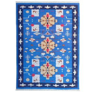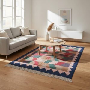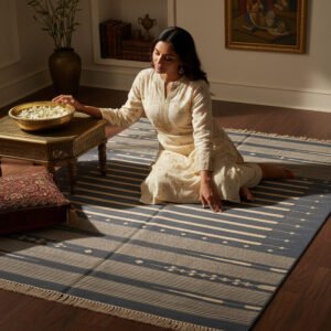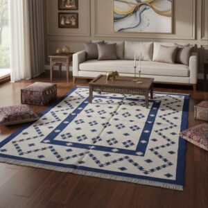 High-Density Hand-Woven Cotton Dhurrie for Living Rooms